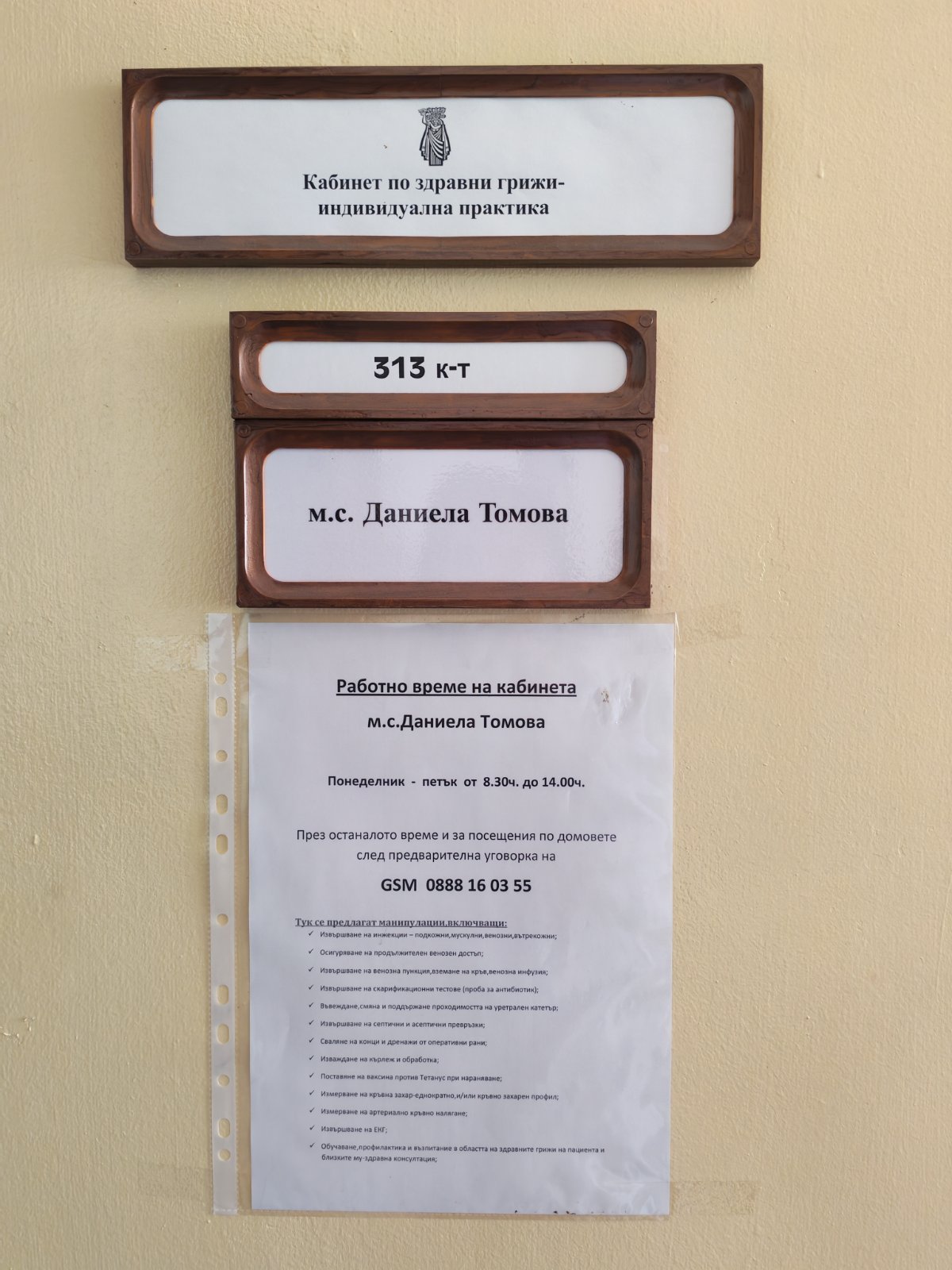 В моята индивидуална практика предлагам извършване на медицински манипулации в спокойна и сигурна среда, при спазване на всички медицински стандарти и хигиенни изисквания. Подхождам индивидуално към всеки пациент, като се съобразявам с неговото състояние, нужди и комфорт.